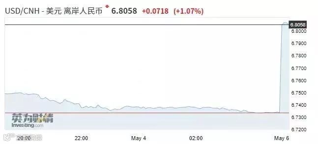 汇率方面,离岸人民币兑美元汇率一度短线急跌250点,盘中跌至6.81下方。