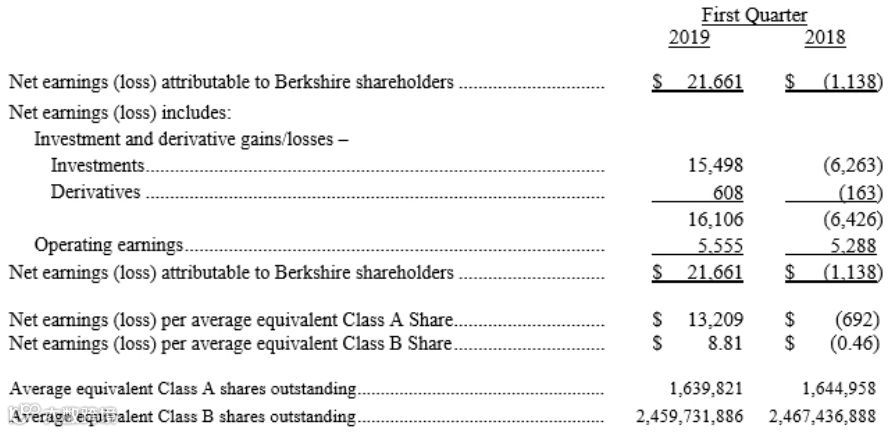 此外,财报还显示,伯克希尔哈撒韦截至今年3月底的浮存金约为1240亿美元,较2018年底增加约10亿美元。同时,今年一季度公司花费约17亿美元回购了A股和B股普通股。