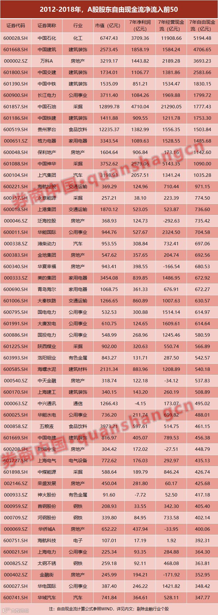 诚然,有一部分个股在不断吞噬现金,但A股也涌现了一批个股,在过去7年生产了大量的现金,其中不乏知名度较高的白马股、价值股。