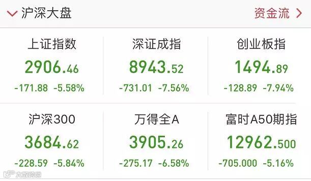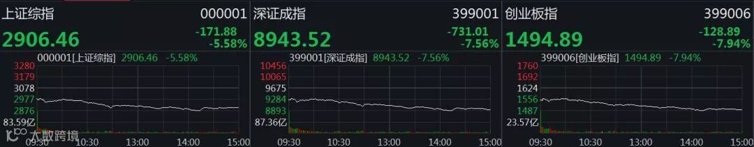 沪指大跌5.58%,盘中一度失守2900点,创2016年2月25日以来最大单日跌幅;