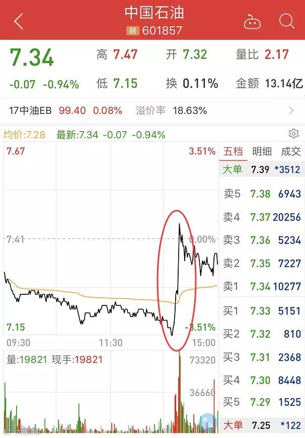 银行、石油等权重板块成为今日护盘主力,下午2点10分左右,中国石油频频出现大单拉升,分时图也呈现直线上升,股价迅速翻红,截至收盘,中国石油收跌0.94%。