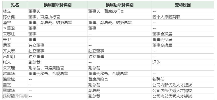 据某业内人士介绍,此次只有一位新聘任为首席风险官的温雪斌。温雪斌早年曾任职于国家开发银行、国开证券、嘉实资本、滨海(天津)金融资产交易中心等。