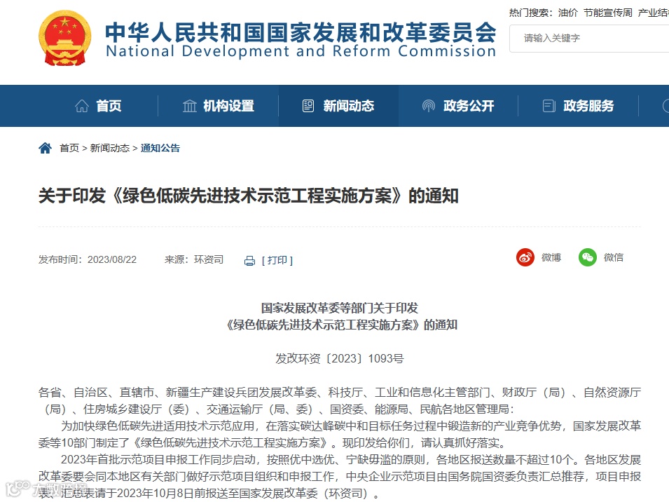 碳达峰中和的实现,低碳零碳负碳的工程落地是关键!近日,国家发展改革委等部门联合印发《绿色低碳先进技术示范工程实施方案》(发改环资〔2023〕1093号,以下简称《方案》)。《方案》提出将布局一批技术水平领先、减排效果突出、减污降碳协同、示范效应明显的项目。