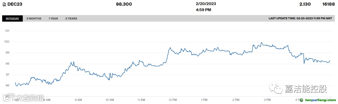 今年以来,碳配额价格先是随着欧洲天然气价格下跌而回调至80欧元之下,然后自2月份开始连连上涨,2月20日,欧洲碳排放价格逼近每吨100欧元大关,2023年2月21日欧盟碳排放价格首次突破100欧元/吨。
