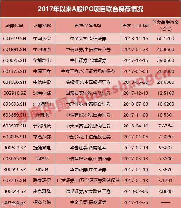剔除招商公路项目,去年11月份上市的中国人保IPO实际募资60亿元,似乎不满足IPO项目100亿元才能采用联合保荐的形式。不过记者了解到,人保最初拟定发行45.99亿股,后来发行数量缩减到18亿股,最终募资60亿。“因为最初募资金额比较大,证监会建议联合保荐。”有知情人士对记者透露。