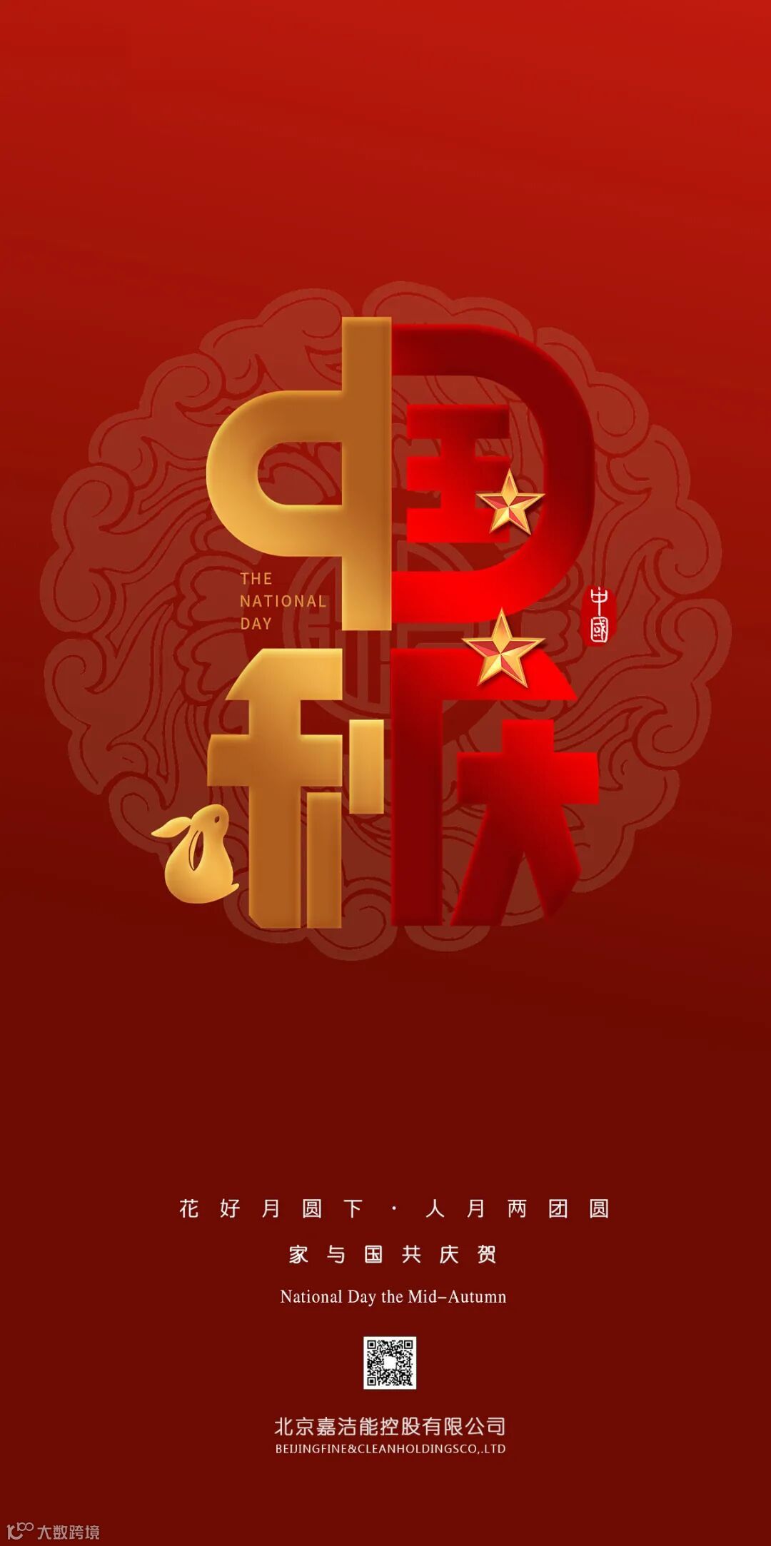 嘉洁能控股恭祝您中秋国庆双节快乐!