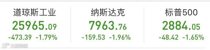 7日美股表现来看,标普500指数收跌48.42点,跌幅1.65%,创3月22日以来最大单日跌幅,报2884.05点。道琼斯工业平均指数收跌473.39点,跌幅1.79%,创1月3日以来最大单日跌幅,报25965.09点。纳斯达克综合指数收跌159.53点,跌幅1.96%,也创3月22日以来最大单日跌幅,报7963.76点。