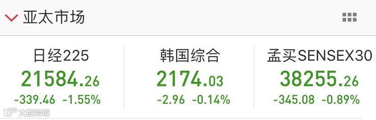 受欧美股市大跌影响,日本日经225指数低开1.4%,随后低走,至券商中国中午发稿,跌幅超过1.5%,东证指数低开1.2%。韩国首尔综指低开1.2%,盘中跌幅收窄。