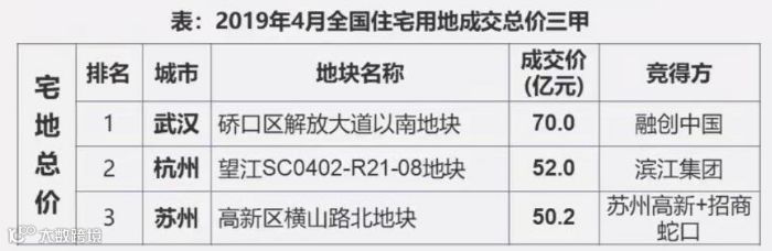 而在4月全国住宅用地成交总价排行榜中,苏州高新和招商蛇口联合体以50.2亿元拿下的苏州高新区地块位列第三。