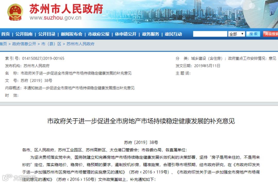 5月11日,苏州市政府出台《关于进一步促进全市房地产市场持续稳定健康发展的补充意见》。补充通知如下: