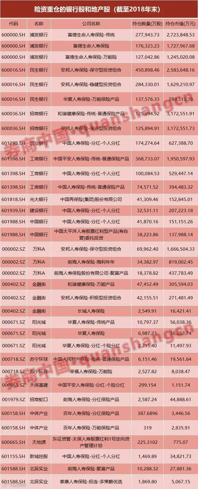 险企青睐银行股的原因是银行不仅经营稳健,且能带来长期稳定的分红收益。银行股属于高股息股,一直以来都是分红较多的股票。例如,2018年招行每股派0.94元,分红总额237.07亿元;浦发银行每股派0.35元,分红总额102.73亿元;民生银行每股派0.345元,分红总额151.05亿元。