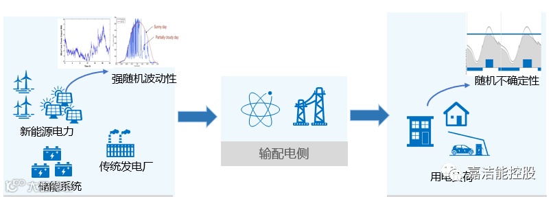 围绕电力的产生和消耗,大体可分为发电侧、电网侧和用电侧。电网对运行安全有着严格要求,而电网安全的首要目标就是保证发用电的实时平衡,需要发电侧的不断调节去拟合负荷曲线。但是,新能源发电严重依赖于自然资源(光照强度、风力强度),具有随机性、间歇性和波动性的特点,对负荷的支撑能力不足。