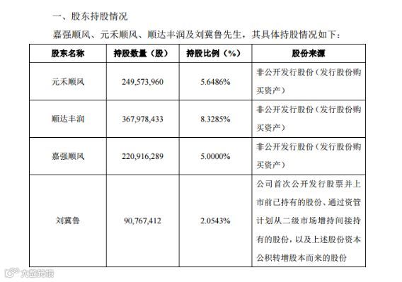 4月4日,顺丰控股公告称, 嘉强顺风、顺达丰润、元禾顺风和刘冀鲁等4名股拟进行减持,分别拟最高减持总股本的3%、3%、1.5%和0.41%,最高减持股数合计达3.5亿股,估算减持市值达到121.1亿元。