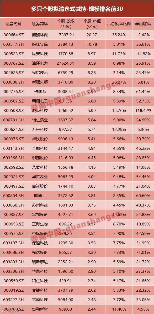 高减持规模固然抢眼球,但更要留意的是清仓式减持。