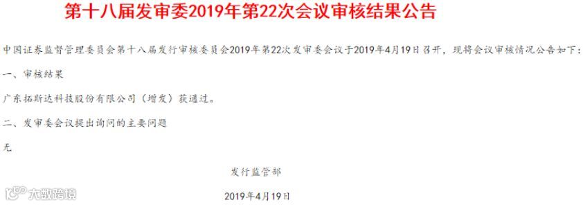 4月19日,证监会发行部第十八届发审委2019年第22次会议审核结果公告显示,广东拓斯达科技股份有限公司(增发)获通过,这意味着在A股市场销声匿迹了5年之久的公开增发又重出江湖了。