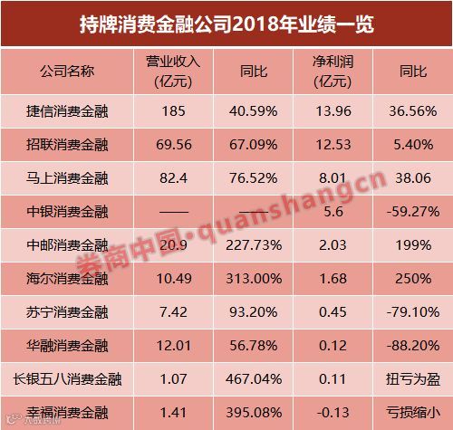 捷信金融年报显示,2018年实现营业收入185亿元,同比增长40.59%,净利润13.96亿元,同比增长39.56%,捷信金融2017年净利润10.22亿元,逊色于招联金融(11.89亿元)和中银消费金融(13.75亿元),净利冠军被中银消费金融摘得。