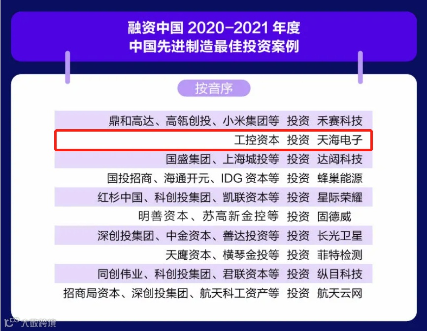 工控资本协同广州工控投资的天海电子,主要从事汽车电线束、汽车连接器、汽车电子等产品的研发、生产和销售,与国内外知名整车厂商重庆长安、上汽通用、奇瑞汽车、北汽集团、吉利汽车、克莱斯勒、通用汽车等建立了长期稳定的合作关系,同时开拓了特斯拉、上海蔚来、小鹏汽车、理想汽车等新能源造车新势力,年营业收入达40亿元以上。