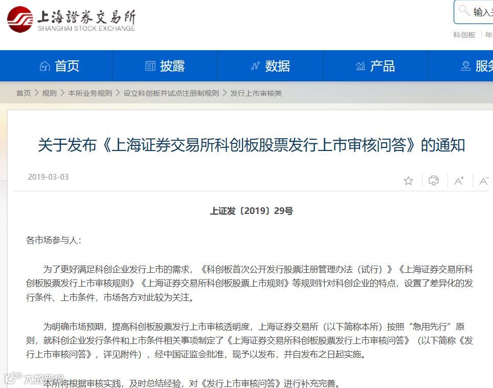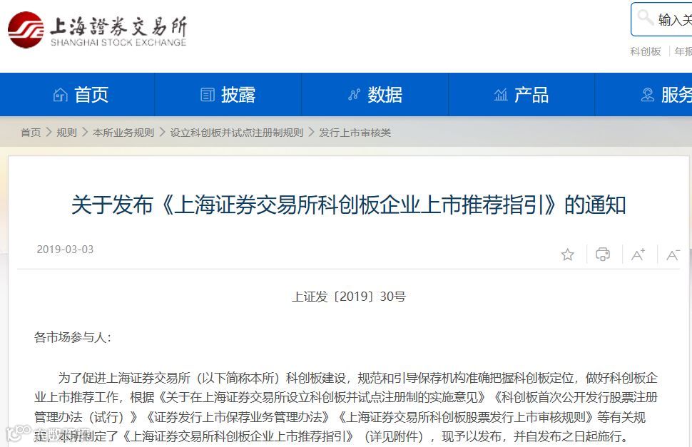 4日凌晨,上交所发布了科创板配套的两个指引,包括《上海证券交易所科创板企业上市推荐指引》(简称《上市推荐指引》)和《上海证券交易所科创板股票发行上市审核问答》(简称《上市审核问答》),明确了科创板企业上市推荐工作和16条审核规范,把科创板的正式实施再向前推进一步。