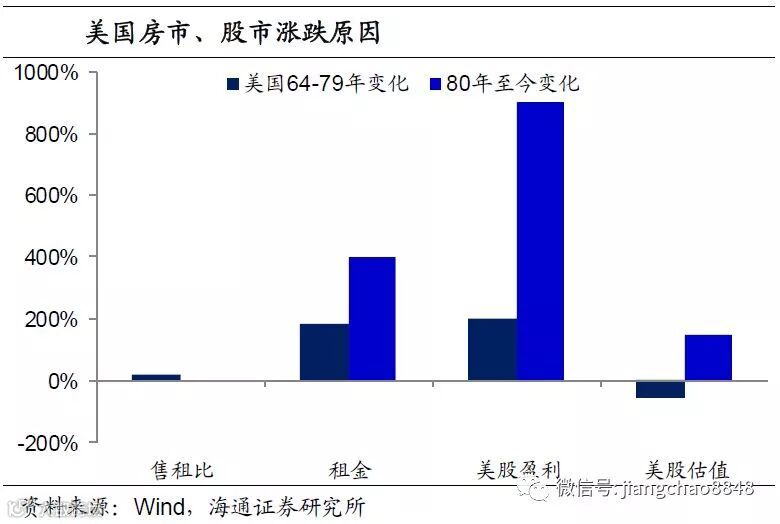 1964年时美国标普500指数的PE估值高达20倍,到了1979年最低降至8倍左右,由于估值降低了60%,即便同期上市公司业绩增长了3倍,但合计的股市涨幅只有20%出头,几乎等于没涨。因而对于当时的美国居民来说,抵御风险的主要办法就是买房。