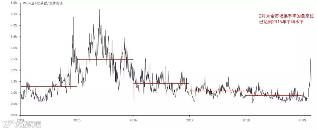 A股在2月的换手率高点已接近2015年平均水平