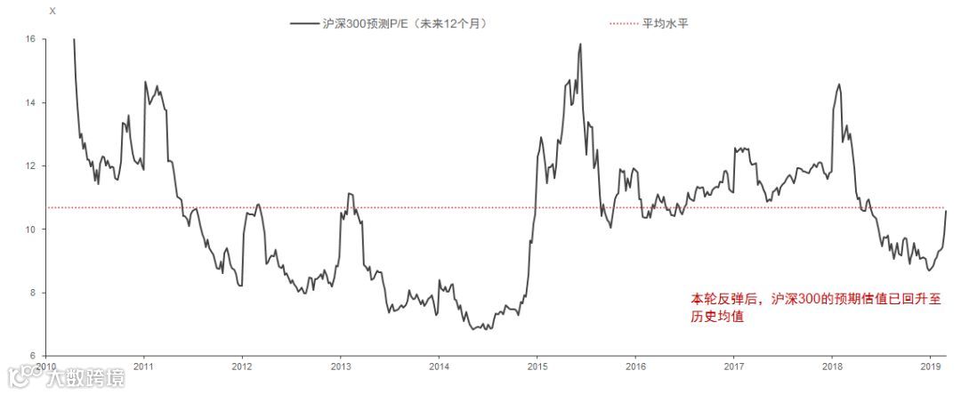 沪深300指数预期P/E已回升至其2010年以来均值附近