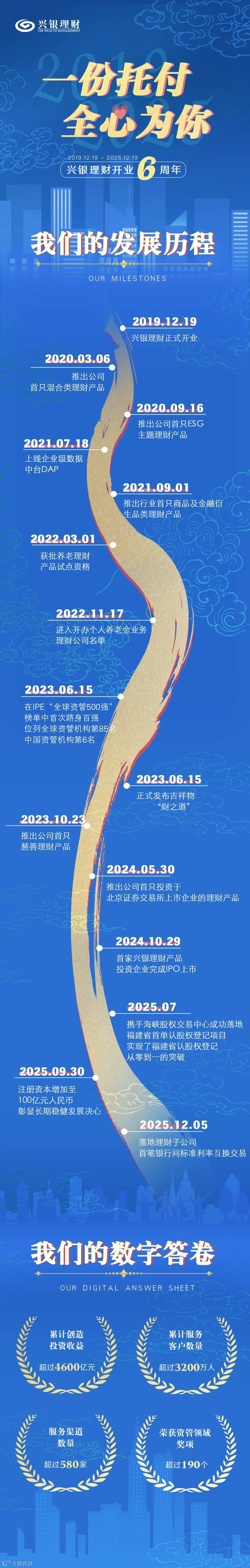 2025年是“十四五”规划收官之年,也是“十五五”规划谋篇布局之年。站在这承前启后的交汇点上,兴业银行全资子公司兴银理财在12月19日也迎来了开业六周年。