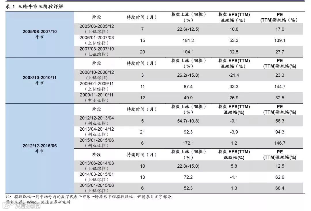 牛市三个阶段特征差异很明显: