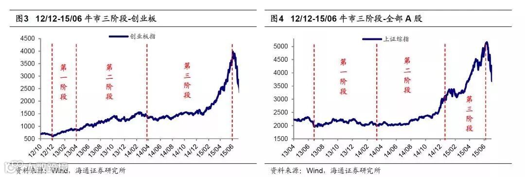 第三阶段泡沫疯狂期:此时盈利增速已趋于平缓,失去第二阶段的加速度,但以散户为代表的增量资金仍在加速进场,推动市盈率走向市梦率,构筑市场泡沫,形成最后一冲。