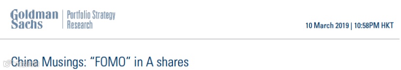 高盛3月10日发布的报告表示,A股投资者担心踏空(FOMO,fear of missing out)的情绪正在显现,如果市场的乐观情绪重回2018年1月时的高峰,高盛认为A股仍有15%的上行空间,而如果市场乐观情绪能够重回2015年6月时的高峰,那么A股可能会迎来50%的涨幅。