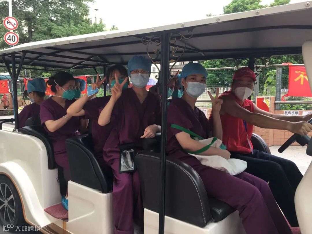 岭南V谷科技园原本只在园区内活动的两辆电瓶车被征用,成了护送进中南街执行核酸检测任务医疗团队的“坐骑”。