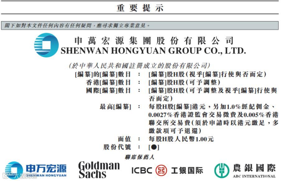 2019年1月18日,申万宏源在香港交易所披露招股说明书。