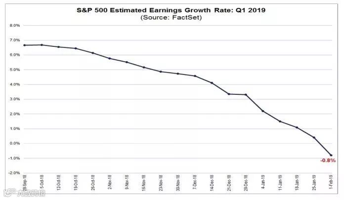 由于美国企业对未来的前景指引大幅下调,华尔街分析师下调了对2019年一季度的盈利预期。上述机构的统计显示,今年一季度的平均盈利增速为负0.8%,或成为2016年二季度以来(即近三年以来)首次录得单季盈利同比不增反降。