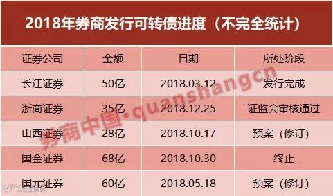 也有券商通过发行可转债来增加公司净资本。据券商中国记者不完全统计,虽然去年以来至少有5家券商发布了发行可转债预案,但只有一单完成了可转债发行。