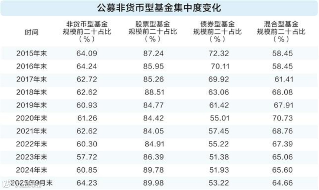 站在2025年末回望,在系列重磅政策的指引下,公募基金行业的高质量发展已步入关键阶段。在此进程中,以非货币型基金(以下简称“非货基”)规模集中度为镜,可以清晰窥见行业竞争生态的深层演变。