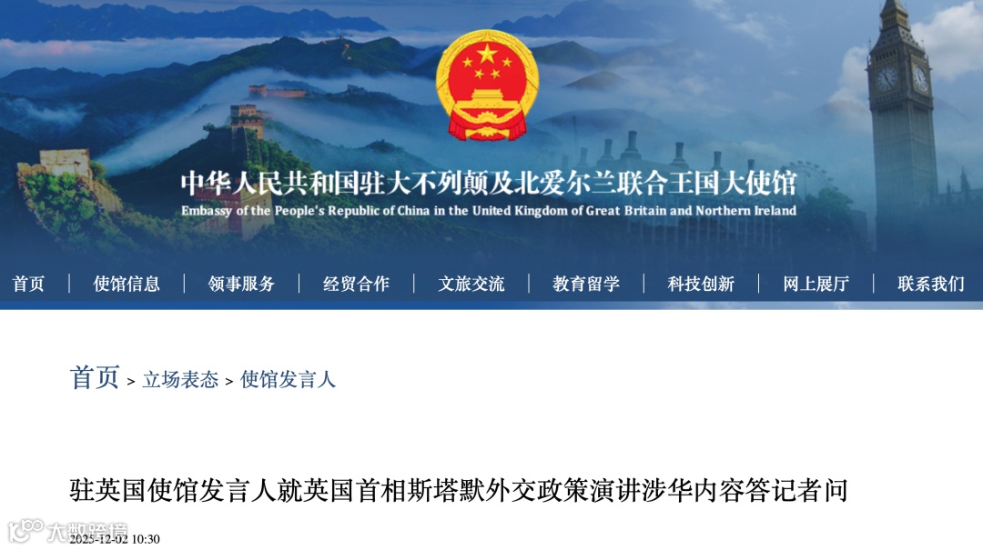 驻英国使馆发言人就英国首相斯塔默外交政策演讲涉华内容答记者问。