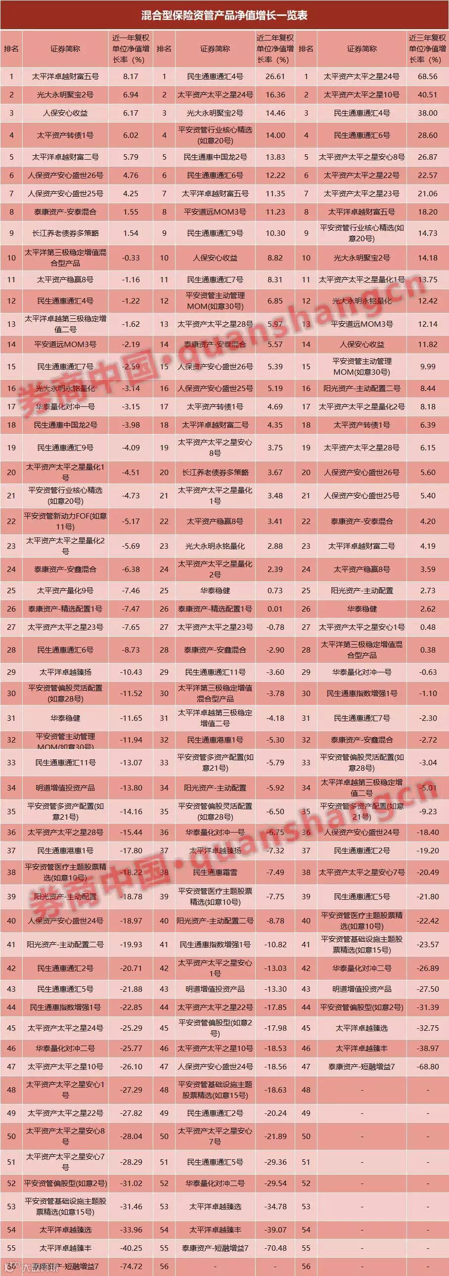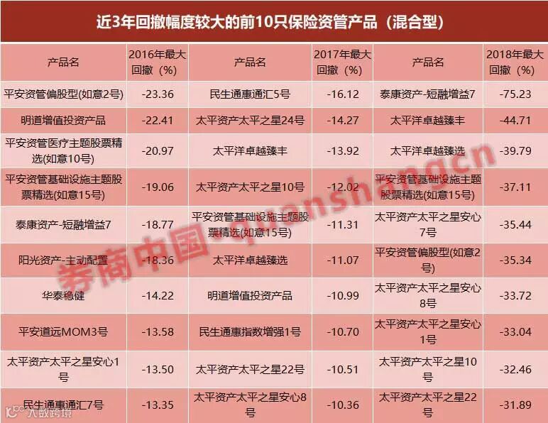 券商中国记者根据Wind数据统计了连续三年公布日净值的混合型保险资管产品共47只。