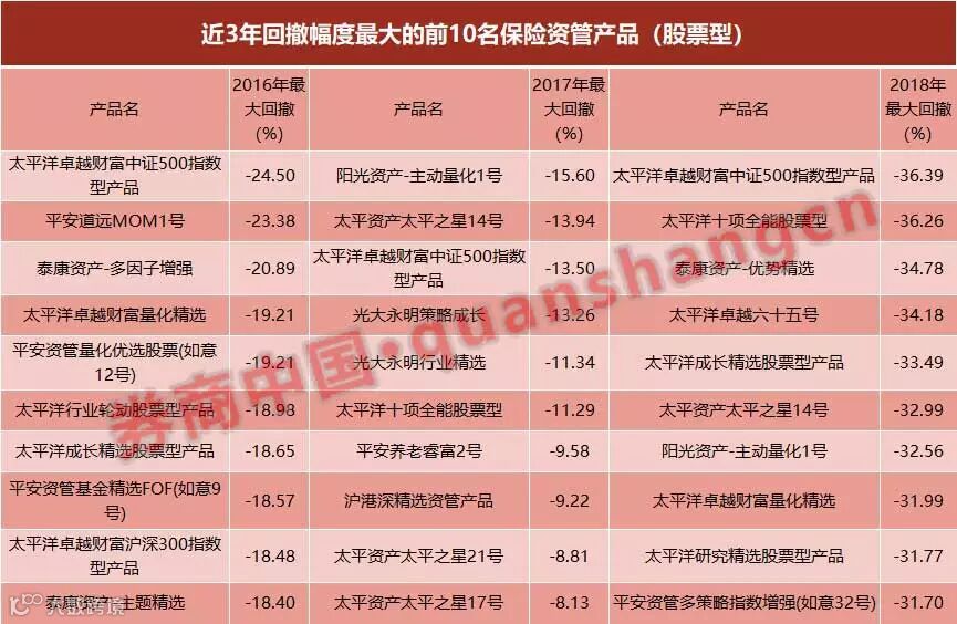 保险资管产品的表现如何?根据原中国保监会《关于加强组合类保险资产管理产品业务监管的通知》,保险资管产品的权益类产品是指60%以上的资产投资于权益类资产的产品。数据显示,虽然整体业绩明显下滑,但是并没有“全军覆没”,仍有3只股票型产品实现正收益。