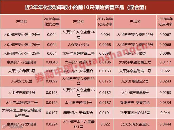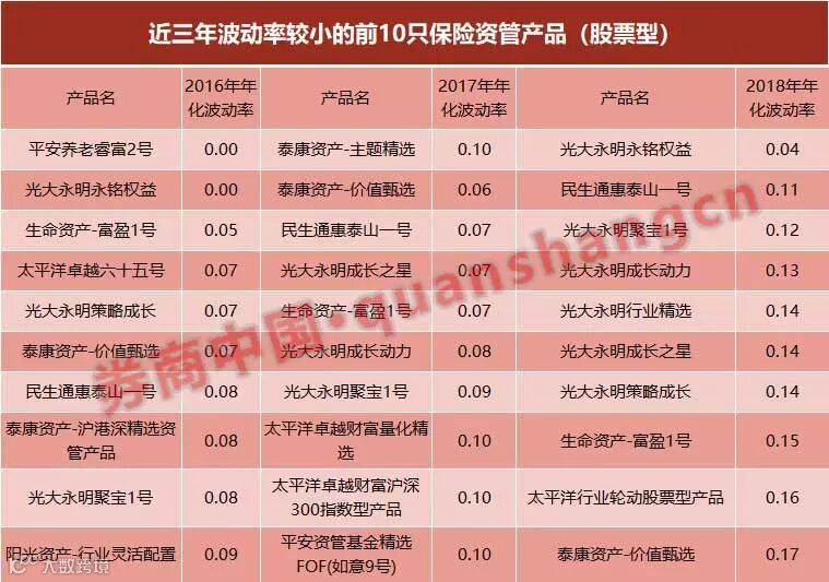 根据Wind数据,过去三年里波动率较小的前10只保险资管产品是: