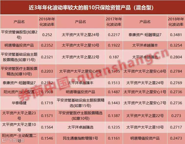 根据Wind数据,过去三年里波动率较大的前10只保险资管产品是: