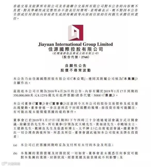 暴跌之下,市场纷纷猜测,是否是公司债券违约而导致股价暴跌?面对市场传闻,佳源国际控股昨日晚间紧急发布澄清公告。