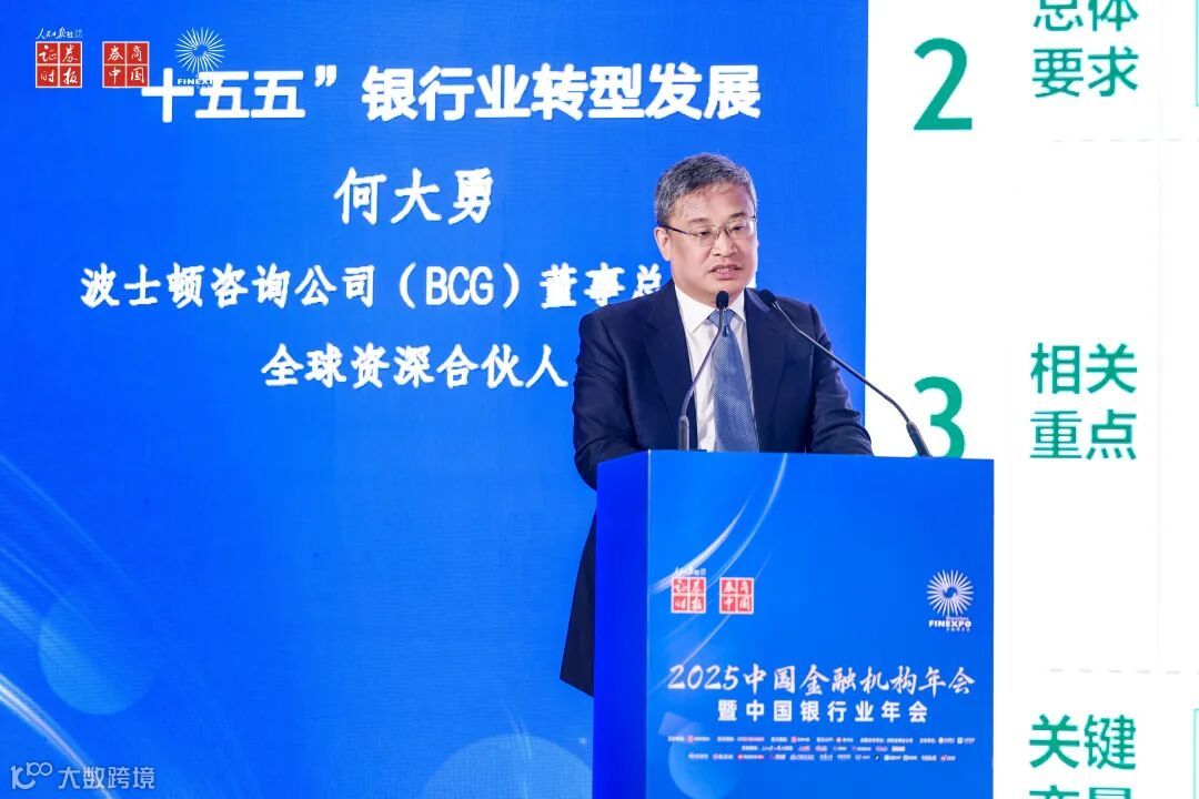 第十九届深圳国际金融博览会暨2025中国金融机构年会近日在深圳举行。在“中国银行业年会”分论坛上,波士顿咨询公司(BCG)董事总经理、全球资深合伙人何大勇发表题为《“十五五”银行业转型发展》的主题演讲。