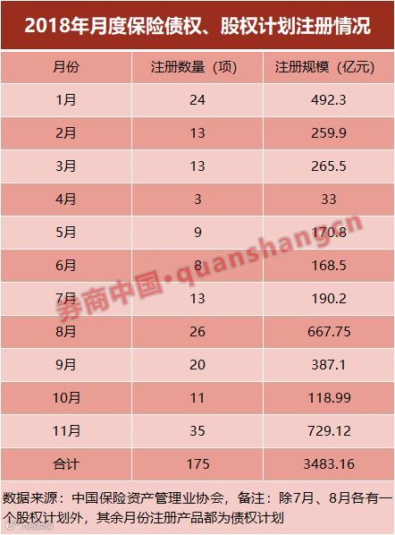 首先,自去年四季度到今年上半年,资管新规是资管行业主要焦点,保险债权计划注册审批收得比较紧,有一些积压。到了下半年,产品的审核注册逐步放宽加快。这是年底注册量较多的一个原因。