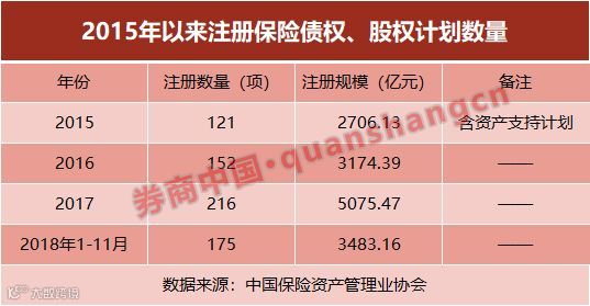 尽管如此,纵观今年,前11月保险债权计划、股权计划注册量共计175项、规模不足3500亿元,在仅剩一个月的情况下,全年注册量低于去年的217项和规模5085亿元,几乎已成定局。若如此,债权计划将出现2015年以来的首次减少。