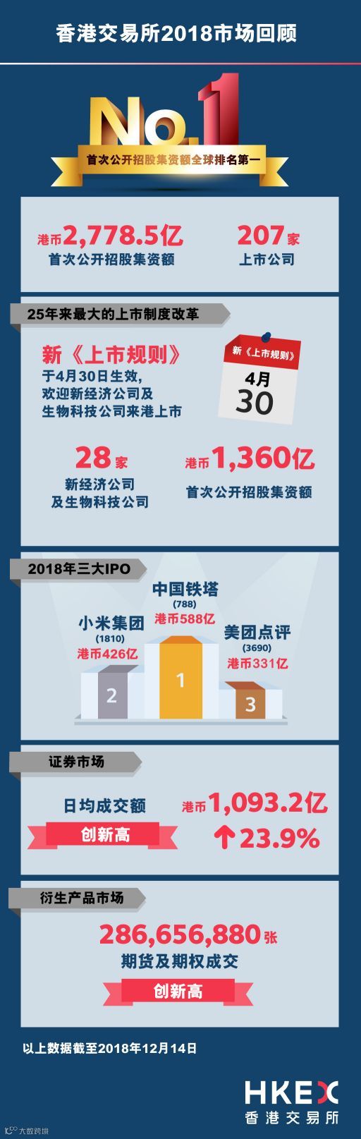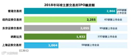 2018年香港IPO募资额重登全球第一宝座,新上市公司超过210家,集资总额超过逾2900亿港元,超过纽交所、东京证券交易所和纳斯达克。