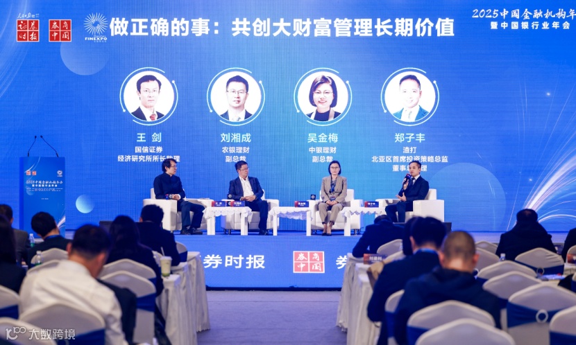 日前,第十九届深圳国际金融博览会暨2025中国金融机构年会在深圳举行。在“中国银行业年会”分论坛上,国信证券经济研究所所长助理王剑主持开展主题为《做正确的事:共创大财富管理长期价值》的圆桌对话,农银理财副总裁刘湘成、中银理财副总裁吴金梅、渣打北亚区首席投资策略总监郑子丰围绕多个热点话题展开深度研讨。