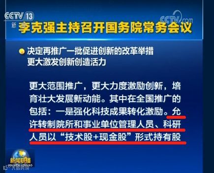 在国务院总理李克强主持召开的国务院常务会议上,决定再推广一批促进创新的改革举措,更大激发创新创造活力,其中和资本市场相关的方面有: