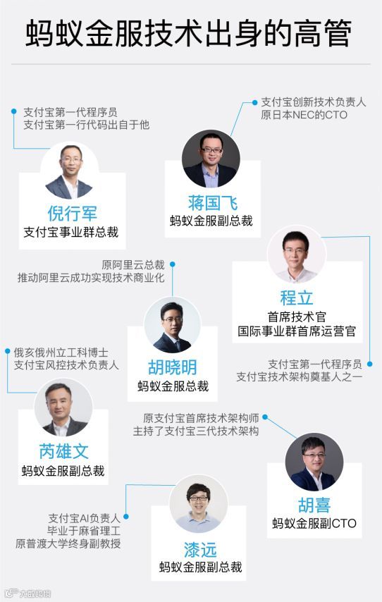 券商中国记者从蚂蚁金服获悉,目前,蚂蚁金服技术出身的高管已至少有7人。