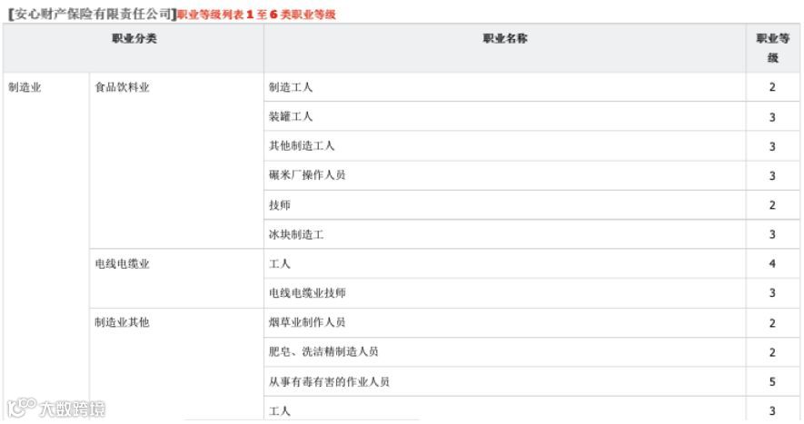 根据保险条款,这份组合保险针对年龄在18-60岁,职业等级为1-3类的被保险人。所谓1-3类职业,包含了大多数行业的大多数职位,比如下表: