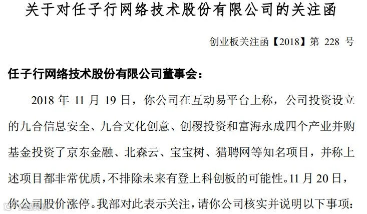 针对董秘们自曝创投概念,深交所今日晚间对任子行下发关注函: