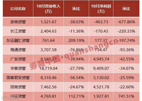 具体来看,这9家券商资管子公司中,华泰资管表现最好,10月实现净利润9409.07万元,环比下降34%;其次是广发资管、招商资管,这两家净利都超过4000万,不过环比下滑幅度也在20%以上。